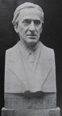 We know of the Ernest Marriott statuette (no.83) which is in a private collection and is dated 1913, and the marble bust of Edward John Broadfield (no.47) which is in store at Manchester Galleries, as are the bronze busts of W.P Frith (no.95) and George Milner (no.51.) The exhibition included sketches or early versions of well-known works such as Adrift (no.41), King Edward VII (no. 35 and 39) and Mrs Rylands (no. 46) all dating from 1905 - 1913. 'The Door of Knowledge' (no.37, illustrated opposite) appeared at an auction sale in London in 2007. This work, seven feet high, appears to have remained in Cassidy's studio until its enforced closure in 1928, and is believed to have come to the 2007 sale from a house in the Manchester area. ![]() 'The Miner' (no.5 - above) appears be an additional casting made from the model for the John Kay memorial of 1908, and 'The Reaper' (no.6) may also be from the same source. ![]() F.R. BENSON, ESQ.