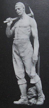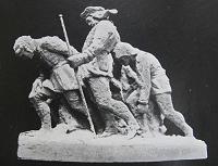'Catalogue of a Small Collection of Sculpture'![]() Note: This catalogue first came to our attention as a photocopy, kindly supplied by Nicholas Wall of the Slane Historical Society, on which the first version of this page was based. Since then we have had access to an original in the archives of the Manchester Academy of Fine Arts, and a newspaper review of the exhibition. This updated page includes that review as well all the text and pictures from the 20-page original catalogue. FIRST STUDIO 1. Equestrian Group, bronze. 2. The Golfer, bronze. 3. "Throwing In", bronze. 4. The Captive, bronze. 5. The Miner, bronze. (see illus., opp.) 6. The Reaper, bronze. 7. The Weaver's Wife, bronze. 8. "The Tide." Summit of a Timepiece, bronze. 9. The Shepherd Boy, bronze. 10. Romeo and Juliet, bronze. 11. The late E.J. Broadfield, medallion, bronze. 12. Dr. Schunck, medallion, silver. 13. Dr. Kenrick Pyne, medallion, silver. 14. The late Cardinal Vaughan, bust. 15. After the Crucifixion, relief. 16. Love is Dead, bronze. 17. Cupid's Slumber, bronze. 18. Portrait of a Lady, bust, bronze. 19. The Quaker's Daughter, bust, fired clay. 20. Sir Alfred Hopkinson, K.C., bust. 21. John Kay, the inventor of the fly shuttle, bronze. 22. George Milner, statuette. 23. The late George Potter, R.C.A., head. 24. Defending the Flag, bronze. 25. Statuette of a Lady, fired clay. 26. Sketch for Garden Group, in stone. 27. Sketch for Garden Group, in stone. 28. "May Morn," marble head. 29. Hosting the Flag, sketch for centenary group. 30. The Mill Girls, group, fired clay. 31. Captain Scott and his gallant men, 17th February 1912, at the pole (see illus.) IN GARDEN. 32. Birds of the Stone-age, group, garden figure. 32A. Birds of the Stone-age, group, garden figure. 33. "Night," stone, garden figure. 34. "Morning," stone, garden figure. SECOND STUDIO. 35. Model for Statue of King Edward. 36. Memorial Panel for Bury Grammar School. ![]() 37. The Door of Knowledge, relief for overmantel (see illus.) The subject is human destiny--"Inspired by the legitimate hope that beyond the dark confines of human knowledge there waits for man the glorious dawn of a brighter day." A gate, rugged and stern of