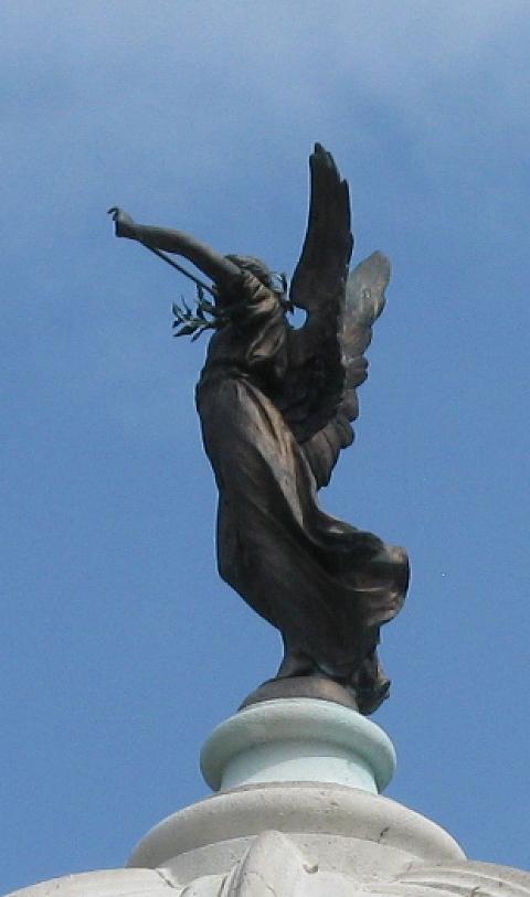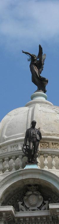 balustrade, surmounted by bronze figure of Fame, and