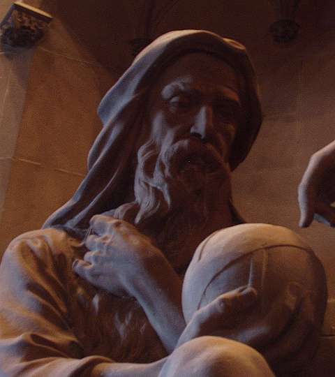 in the guise of an aged man seated, and supporting in his hand a globe,